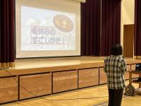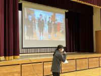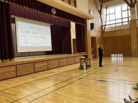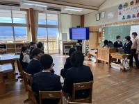 はくい獅子舞保存活性化実行委員会のメンバーである歴史民俗資料館の中野さん、ICT支援員の若狭さんを招き、今まで調べたことや祭りの活性化に向けての提案について聞いていただきました。それぞれ自分たちの町の祭りや獅子舞の歴史や実態を聞き取りやアンケート等で調査し、考えをまとめ、「青春団を作る」「チラシを作成」「ショーをする」「体験会をする」などいろいろな提案がなされました。祭りに詳しいゲストティ-チャー2名も感心され、「どの町も本当によく考えた驚きの発表や提案でした。こんなにすごく、よく考えた内容に本当に驚きました。ぜひ、これからも祭りを大切に地域を大切にしていってほしいです。」とお褒めの言葉をいただきました。