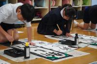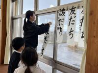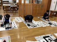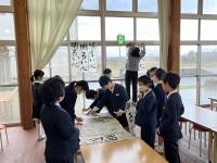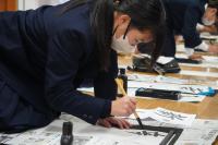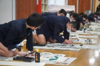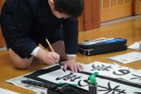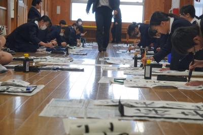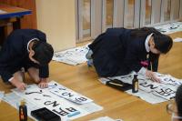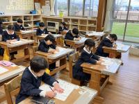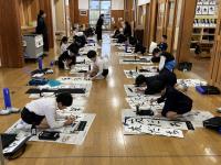 1月7日、校内書き初め大会が行われました。3~6年生は、廊下で書きます。