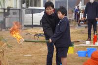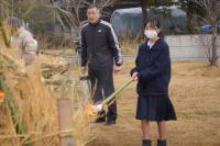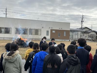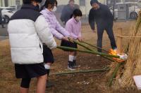 神事のあと、いよいよ火をつけます。4~6年学級代表さん、お願いします!