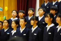 ソプラノが6年生、アルトが5年生、きれいな歌声が体育館に広がります。