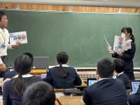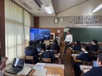 はくい獅子舞保存活性化実行委員会のメンバーである歴史民俗資料館の中野さん、ICT支援員の若狭さんを招き、今まで調べたことや祭りの活性化に向けての提案について聞いていただきました。それぞれ自分たちの町の祭りや獅子舞の歴史や実態を聞き取りやアンケート等で調査し、考えをまとめ、「青春団を作る」「チラシを作成」「ショーをする」「体験会をする」などいろいろな提案がなされました。祭りに詳しいゲストティ-チャー2名も感心され、「どの町も本当によく考えた驚きの発表や提案でした。こんなにすごく、よく考えた内容に本当に驚きました。ぜひ、これからも祭りを大切に地域を大切にしていってほしいです。」とお褒めの言葉をいただきました。