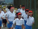 学年に応じて距離を設定し,本校の縦割りグループ(赤・黄・白・青)ごとにみんなで走ります。
