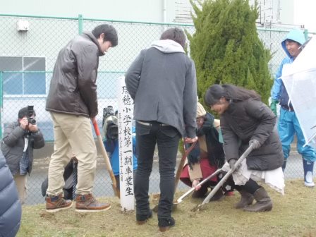 2015年1月10日 16時56分平成18年度の卒業生のみなさんが、当時卒業記念に埋めたタイムカプセルを掘り起こし、開封する式を行いました。そうです。今年卒業8年目、成人式を迎えるみなさんです。