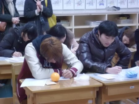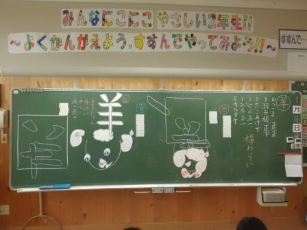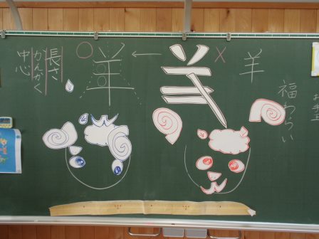 その後、「羊」という漢字の筆順を確認し、その字も福笑いの形式で作ると思わぬ