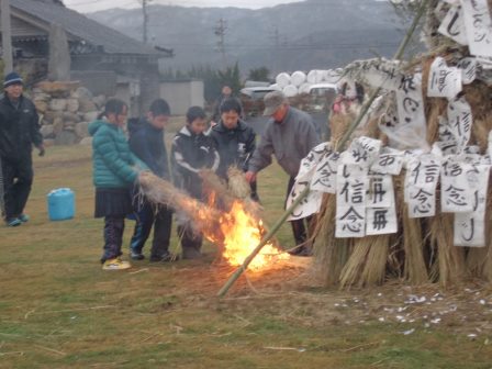 2015年1月15日 20時20分地域の伝統行事である左義長に参加しました。