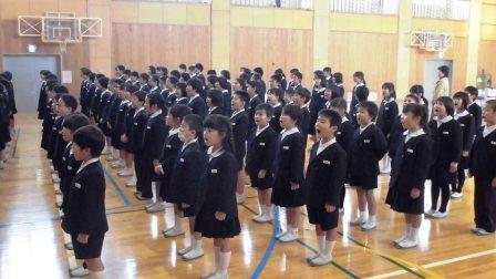 今回の集会から校歌は、6年生に代わって5年生の杉本さんがピアノ伴奏を、4年生が2部合唱の低音部を歌いました。少しずつ、6年生がリーダとして担ってきた役割の移行が進んでいます。