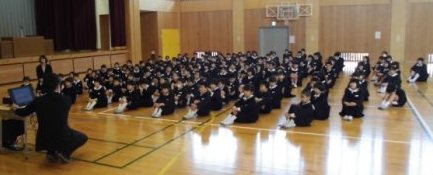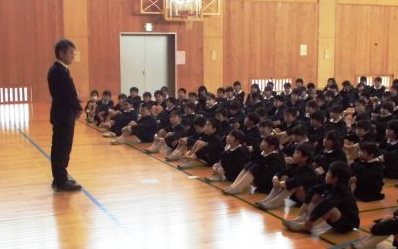 終業式の後、生徒指導担当と全校児童で冬休みの生活について確認をしました。