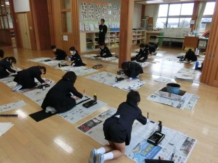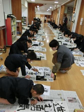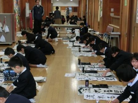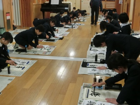 さて、1月8日(火)、3学期の始業式の後、校内書き初め大会を開催しました。