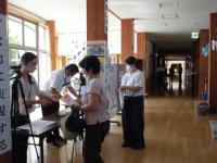 全校に放送で発表しました。