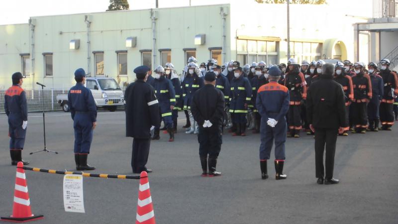 消防署員や消防団員が、きびきびとした連携・声掛けで