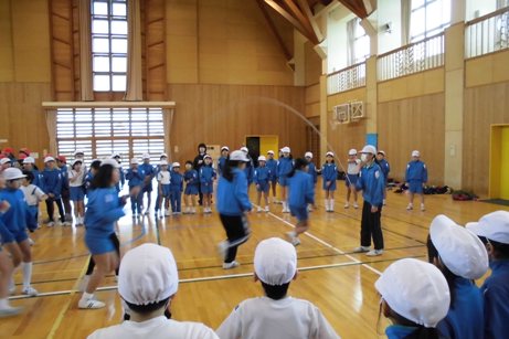個人競技では、体育の時間や休み時間に練習してきた成果を発揮して、決められた時間を跳び続け、見事クリアする児童がたくさん見られました。また、残念ながら途中でひっかかってしまった児童も、次の種目では合格するぞ!と意欲を持って取り組んでいました。