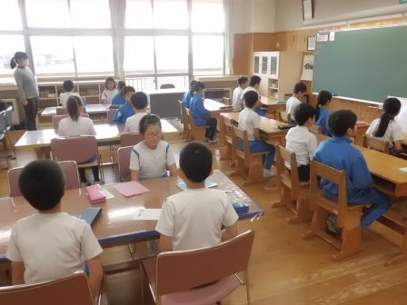 特に、朝自習終了後はそのまま4・5・6年生といっしょにオープンスペースで今月の