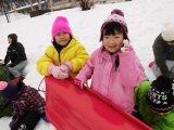 そり遊びでは,二人乗りのそりに乗って,真っ白な坂道をシューッと滑り降りました。少し怖がっている子,満面の笑顔の子,ペアの子に「前にする?後ろにする?」と優しく聞いている子と,それぞれでした。