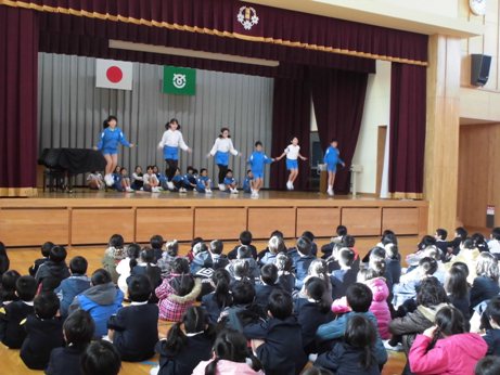 今日は,高学年のすばらしい技を全校で見せてもらいました。