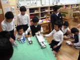 作ったおもちゃの車を実際に坂道で走らせたり、楽器を使わせてあげたりもしていました。