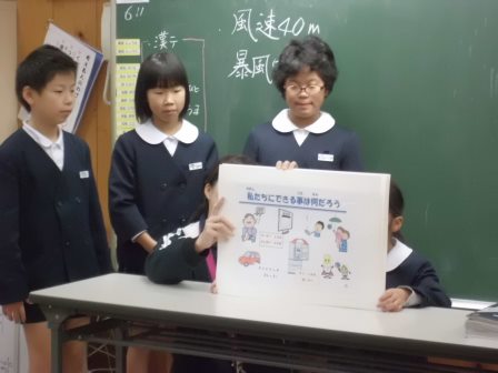 今日は、エコ活動の推進役として活動している環境委員会が、委員会活動の一環として創作した紙芝居「めざせエコスクール」を朝読書の時間に披露しました。