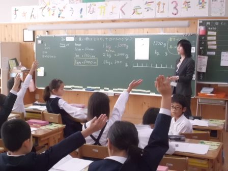 「○○ですね。」と確認をしたり、図を指さして説明するなど、一生懸命ペアで話したり黒板の前で説明したりとがんばっていましたよ。