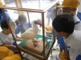 子どもたちは本物のトキを間近に見て、大興奮です。