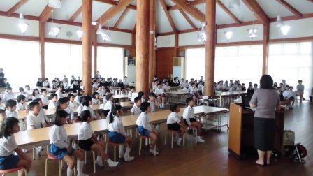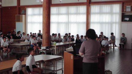 今回は、「みそ汁のひみつ」と題して、みその種類、みそ汁がおいしいわけ、みそ汁の栄養価等についてご指導いただきました。説明を聞いた児童からは、「朝、パンやご飯だけしか食べない日があったけど、これからはできるだけみそ汁も飲むようにしたいと思います。」とふりかえる声が聞かれました。