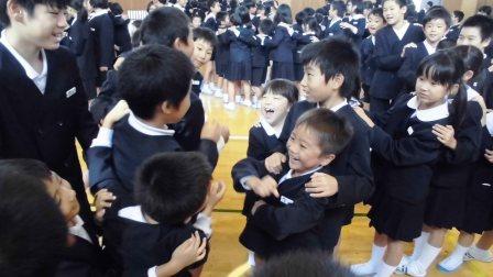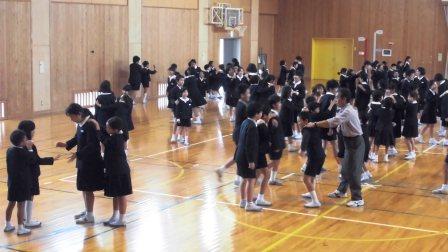 全校集会に引き続いて行われた児童集会では、企画委員会主催のじゃんけん列車で、全校の絆を深めました。