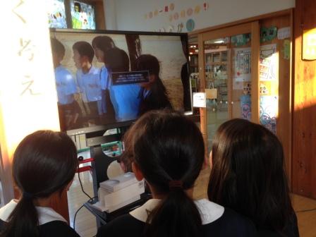 2つの学校の取組を,DVDにして,朝の玄関で流したところ,