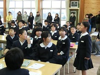今回の授業参観では、今年取り組んできた低・中・高の2学年くくりの集会「ブロックほっとタイム」の様子を見ていただきました。低学年は「みんなとなかよく」、中学年は「本当の友達とは」、高学年は「親子ゲンカ」をテーマに自分の考えや思いを素直に表現し、一人一人が考えを深める本音トークの時間を共有しました。その後、防災教育をテーマに金沢大学 青木准教授と林准教授に災害発生時の対応について具体的にお話をしていただき、それを受けて実際の引き渡し訓練を行いました。