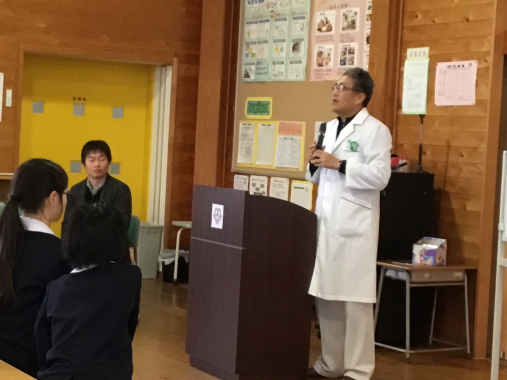 次いで学校医の平場先生から、人の心を色にたとえ、色の混ぜ具合やその時々で、様々な色が存在するのと同じように、一人の人間の心もそのときによって何通りにも変化することが説明されました。今回の集会は「心の健康」をいじめの視点から考えることで、一人一人がこの難しい課題に真剣に向き合うよい機会となりました。