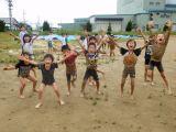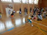 転がしドッジボールでは,親子チームで団ごとに競いました。