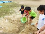 夏の遊びとして,水・砂・土を使った遊びをしました。