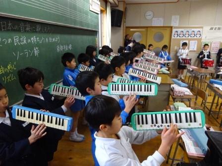 まず,4年生の音楽の授業です。4年生は鼓笛の練習をしていました。