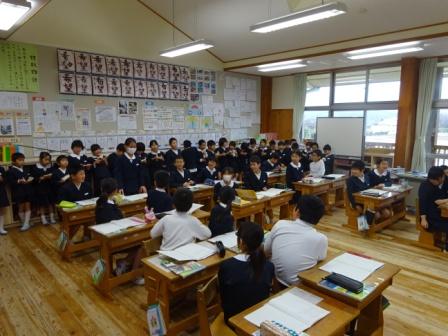 どの学年も落ち着いた雰囲気の中にも,規律も感じられ,低学年にはない教室の雰囲気に2年生も感じるところが大きかったようでした。今回の相互参観で学んだことは,さっそく取り入れたいと話す2年生でした。