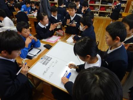 「グループで友達に『どう思う?』って聞いていた」「ホワイトボードを上手に使っていた」「アドバイスをしていた」「グループで協力して意見をまとめようとしていた」「『自分だったら・・』」と自分のこととして考えていた」「行動がはやかった」「字を分かりやすく書いていた」