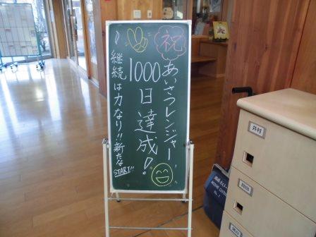 1000日の節目を迎えた今日は、朝早くからPTA役員のみなさんも玄関前に立ち、大きな声であいさつしてくださいました。通常は60名程度の参加人数ですが、今日は100人以上の参加者となりました。