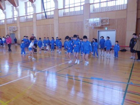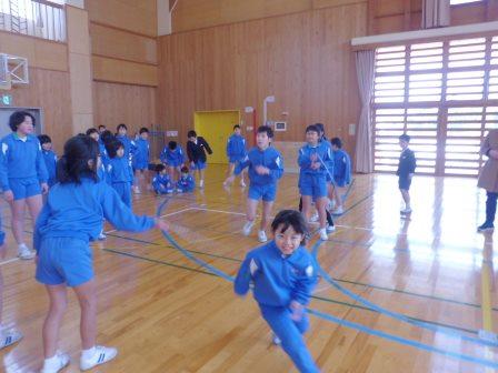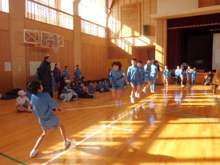 当日は、冷え込んだ体育館での集会でしたが、学年毎の個人種目が始まると応援の声も飛び交い、会場はヒートアップ!制限時間を跳び続け、クリアして喜ぶ顔。あとわずかのところで引っかかり、無念の顔。それでも、健闘をたたえ、団の枠を越えて温かい拍手が贈られました。