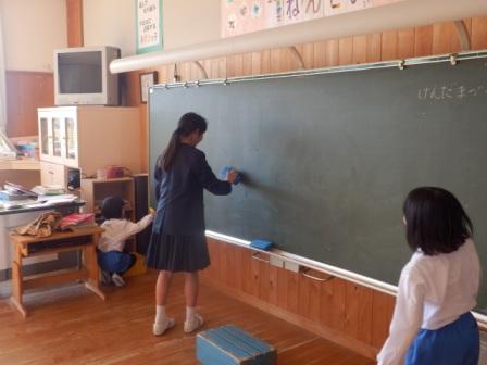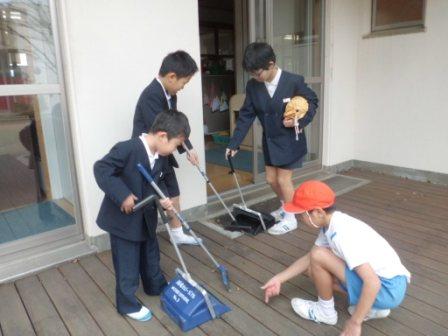 さらに,休み時間になると玄関の掃き掃除や図書室の本の整理整頓,黒板の掃除,落ち葉拾いといろんなボランティア活動に励む子供たちの姿が見られました。