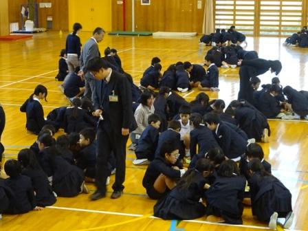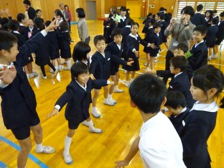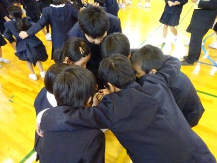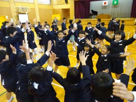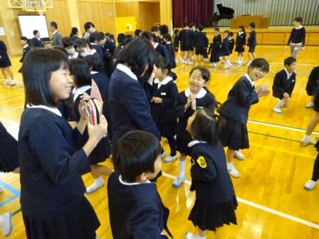 12月の全校集会の後,児童集会がありました。今回の児童集会は,縦割り班による「縦割り班対抗ジャンケン大会」でした。みずほっ子の児童はみんな,縦割り遊びが大好きです。今回の遊びは,縦割りの小グループで相手を見つけ,グー・チョキ・パーを体全体を使って表現します。そして,ジャンケンに勝ったときは,相手からカードをもらいます。