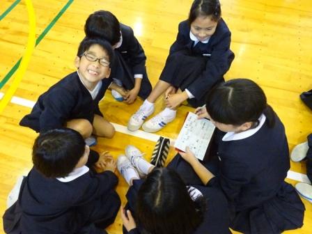 相談している時も,みんなとっても嬉しそうです。そして,ジャンケンで勝利をするたびに,みんなでその喜びを分かち合っていました。