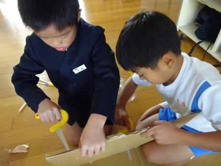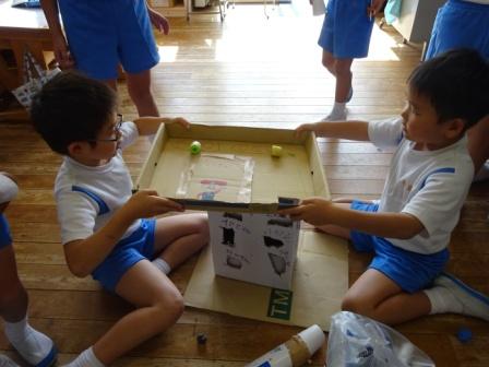 と、同じグループの友達同士で、活発に意見を出し合いながら、よりよいおもちゃ作りに向けて工夫を重ねているようでした。