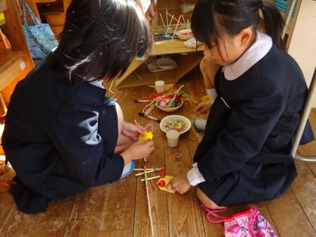 生活科の究極の目的は「自立への基礎を養うこと」です。おもちゃ作りを通して,自分のことは自分で行うという自立の精神を育むことは,とっても大切なことです。やはり,生活科で学ぶことは大きいですね。おもちゃ作りを通して,日に日に成長していることが分かります。
