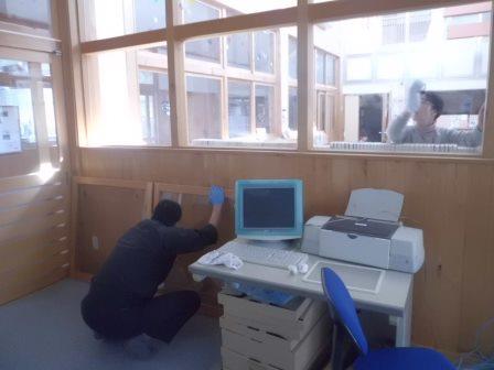 開会式では、PTA会長さんから激励の言葉をいただき、各学年ごとに打ち合わせを行ったあと、いよいよ作戦開始!窓ふきを中心に、トイレ掃除や天井の汚れ取りなど、通常の掃除ではできない細かい所まで、きれいにしていただきました。洗剤のあとが消えるまで何回もからぶきしてくださった方々、トイレの便座や排水の部分をきれいにしてくださった方々、高所の窓や天井を脚立や棒を使ってきれいにしてくださった方々。保護者の皆様のがんばりを間近に見て、児童も1時間半の掃除をやりぬくことができました。