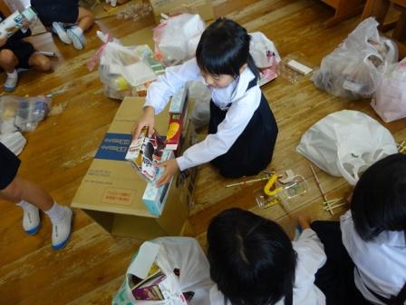 「小さな袋を持って,その中にごみを入れる!」と,たくさんの意見が出ました。そして,この日の後片付けの様子を見ていますと,2年生はすぐに作業を止め,みんなが協力し合って掃除や後片付けをしていました。中には進んで,材料や道具の整理整頓に取り組んでいた子もたくさんいました。