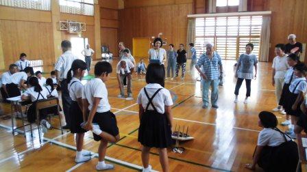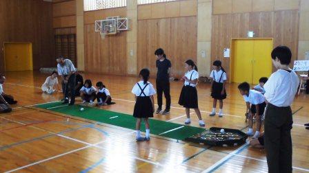 1部では、3年生と老人会のみなさんと混合でチームを編成し、チーム対抗で輪投げ・スカットボールを行いました。思いように得点できない3年生に対して、次々得点する老人会のみなさんに、「うまーい!」、「すごーい!」という子どもたちの声が何度も起こっていました。
