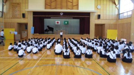 その後、生徒指導担当から夏休みの振り返り、9月の生活目標「よく考え、きまりを守ろう!」の確認を行い、集会を終えました。