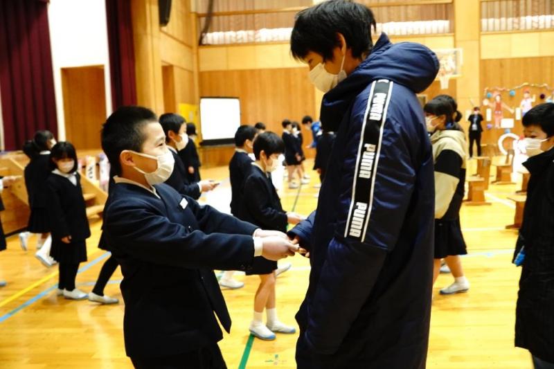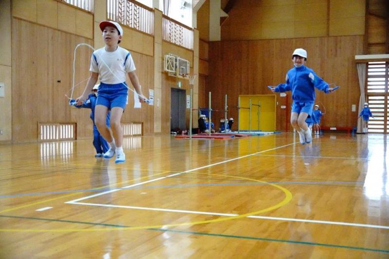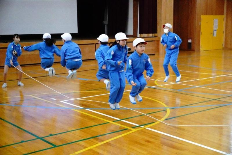 1月28日(金)1・6年生、2・5年生、3・4年生のペア学年ごとになわとび集会が行われました。