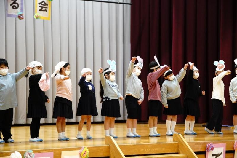 1年生の音読劇「くじらぐも」と「ぷっらりくじら」の歌では、元気いっぱいの音読とかわいい振り付けで、会場中が笑顔になりました。
