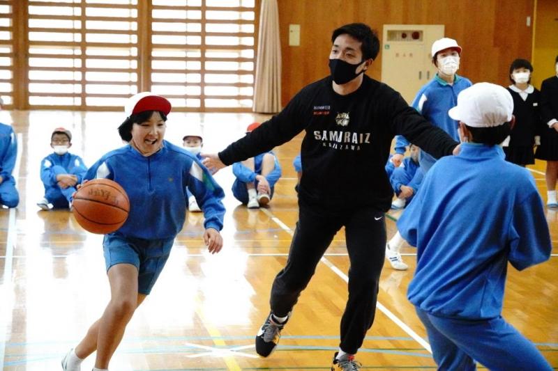 1月19日(水)5年生を対象に金沢武士団の方が3名来校されてバスケットボールの授業が行われました。