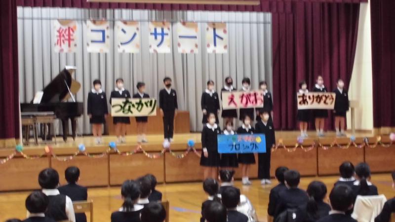 7日に絆コンサートがありました。オープニングの5年生「絆アップ宣言」では、生活目標「感謝」をテーマに楽しい寸劇を披露しました。