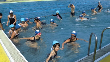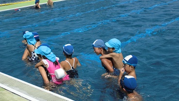 初めは小プールでぐるぐる回り、大きなプールと水に慣れ、