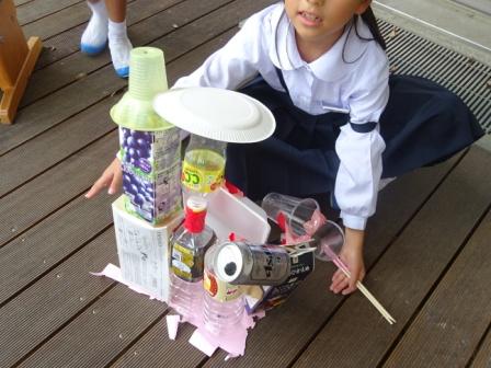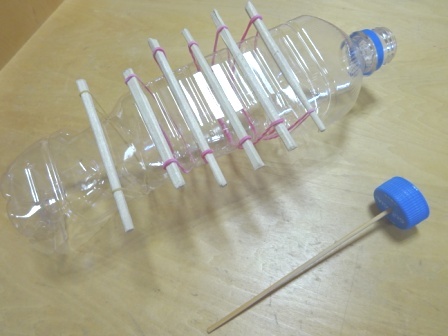 音の出るおもちゃ作りが順調に進み,いよいよミニおもちゃランドとして,「演奏会」を開くことになりました。各グループで自分の作った楽器を持ち寄り,様々なメロディを奏でます。もちろん楽器と言っても様々で,どの楽器も独創性に溢れています。子供たちは,モデル作品こそは参考にしましたが,他に一切説明書は見ていません。自分たちで,試行錯誤をし,工夫を重ねながらオリジナルの楽器を作りました。