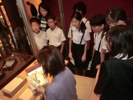 子どもたちは金箔の美しさだけでなく,